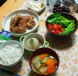 いただきものの玉ねぎを使ったメニューです。 唐揚げ 玉ねぎおろしとニンニクの風味グリーンサラダ玉ねぎコ…