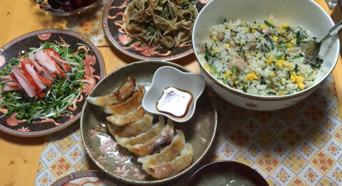 疲れていると、味の濃いものが食べたくなります。 鶏ももとニラ炒飯もやしときのこのナムルカイワレとシラス…